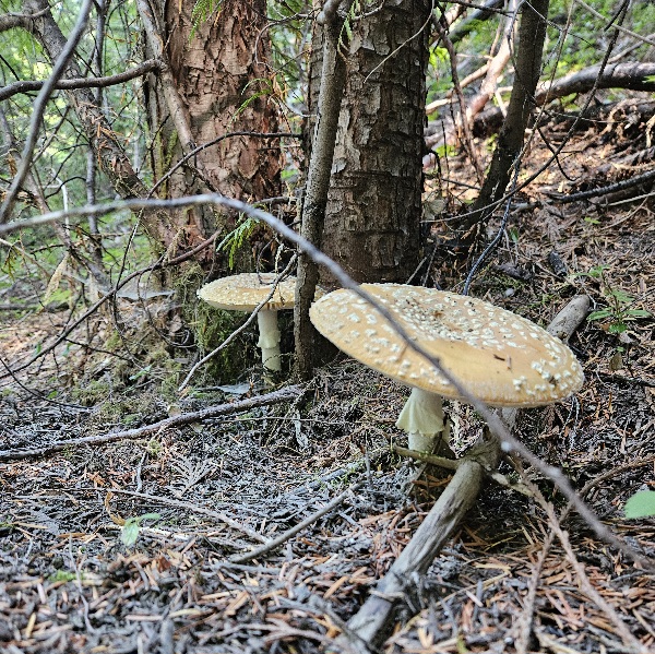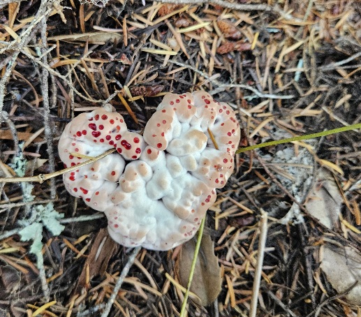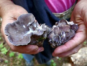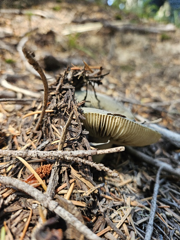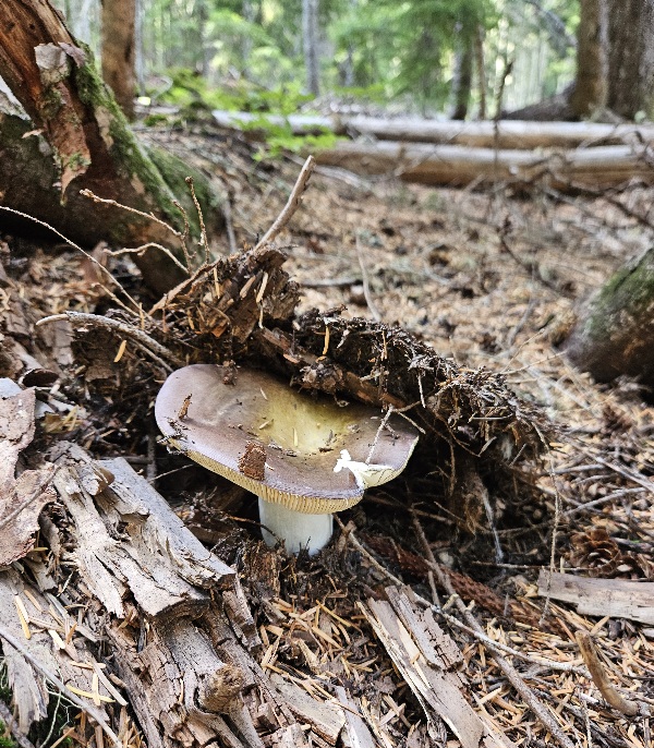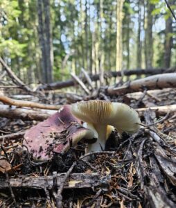 We found a number of Russula species under mushrumps, lifting the forest duff as they forced their way aboveground.