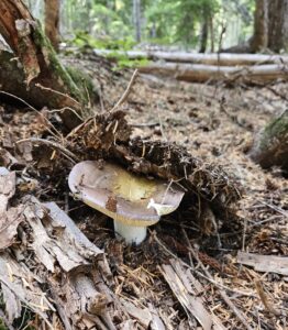 We had been hearing rumors of boletes being found at higher elevations, so Amy loaded Michael, Walter and me into the CrossTrek and we headed north of Trout Lake.