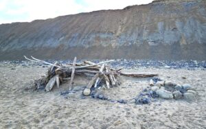 7/25/25 Amy and I slept in Friday morning. When we did get up, we let Walter out of the truck and the three of us headed for the beach, walking under Highway 101 to get to the ocean.