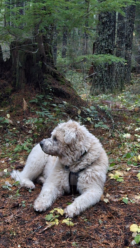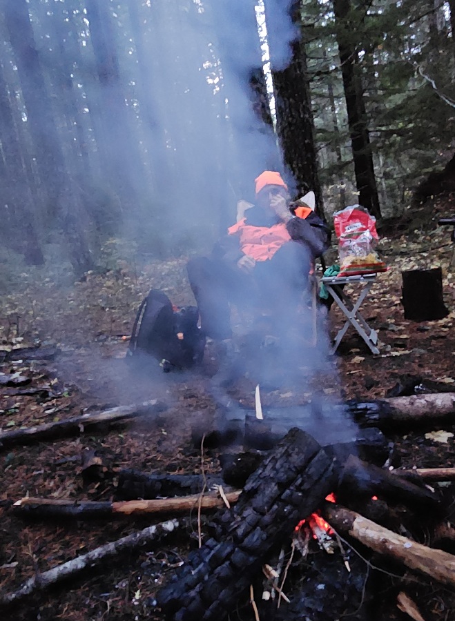 When we reached less rocky terraine we stopped to do some more foraging. We found a few sodden lobster mushrooms and a handful of nice chanterelles before setting up the chairs, starting a fire and sitting down for some snacks.