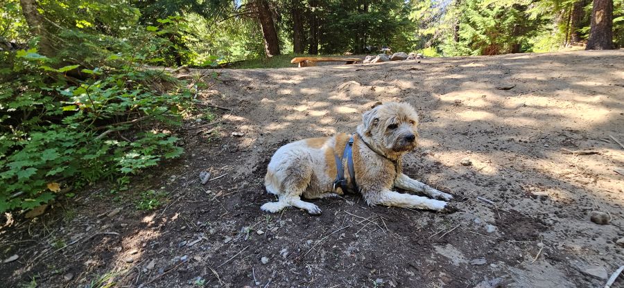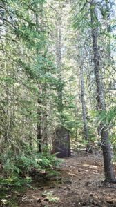 The campsite itself was a fairly open glade in a stand of lodegpole pine, with a few scattered hemlock and spruce. It easily had room for several tents or tipis. I sat in my chair and had iced tea, dozing in the sun with Walter at my side. Enough breeze filtered through the trees to ensure a comfortable temperature. It wasn’t buggy. It would do.
