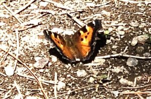 My brother recorded 105f (16.5c) at our folk’s house. I didn’t bring a thermometer, but it was tolerably cooler as I enjoyed my lunch by the creek. Flaming orange butterflies flitted about. Minnows jumped in the stream. A brilliant blue and white Kingfisher darted past. It was definitely better than another day at home in the recliner.