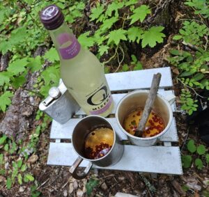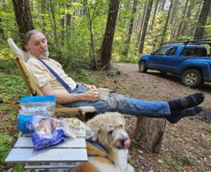 It’s been hot and dry, but a rain squall had moved through a couple of days ago. We hoped there had been enough moisture to coax some chanterelles or lobsters through the duff.