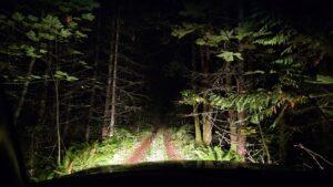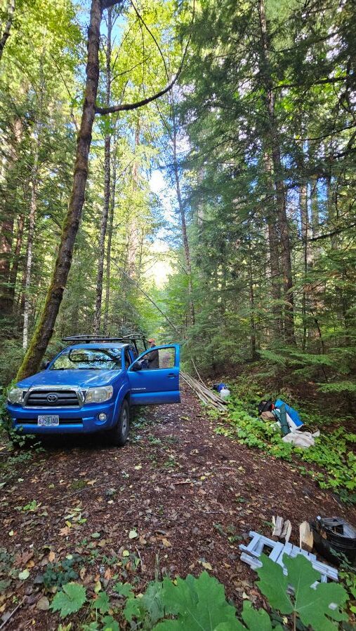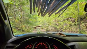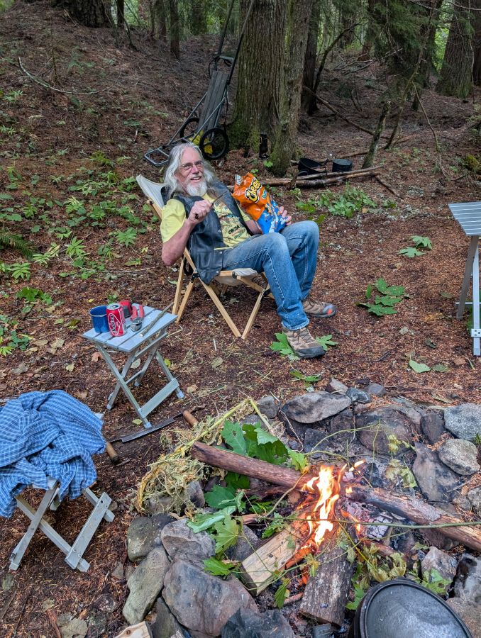 10/3/25 8:30 Clear sky cool, temperate weather, The moon waxing gibbous and approaching full. Just got home from the deep, dark forest. Mike and I drove north, looking for someplace we hadn’t camped before.