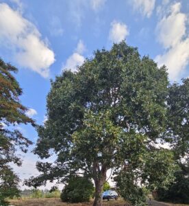 Somewhere behind the curtain of oaks, a dove coos.