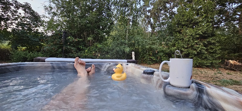 I sip my tea and listen to a woodpecker tapping.