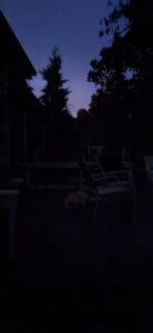 9/5/25 5:30 65F (18.3C) The crickets are in full song. It is a dark morning, no light from the nearly full moon escapes the heavy clouds.