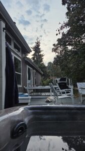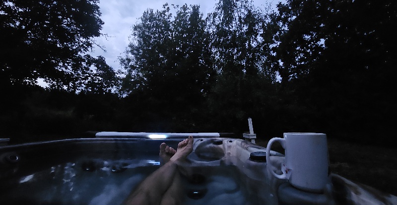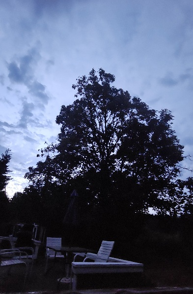 11/9/25 7:00 36F (2.2C) Cool, calm, and clear. The sky is blue, rimmed with pink. The moon, still...