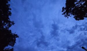 Although it’s not as dark as yesterday,  the moon, one day from full, remains hidden behind clouds.