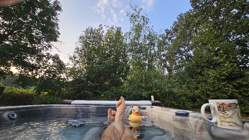 4/23/26 6:45 42F (5.5C) A hint of a breeze stirs the leaves beneath a blue sky delicately laced with...