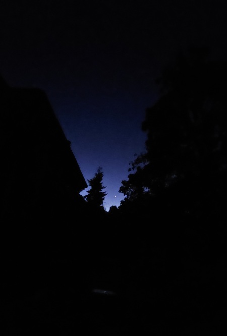 4/10/26 5:30 48F (8.8C) Cloudy. No wind. The moon is hiding. The air is thick with pollen and the smell...