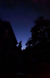 4/13/26 5:30 50F (10C) Cloudy with a faint breeze and a light mist falling. Monday morning. The birds...