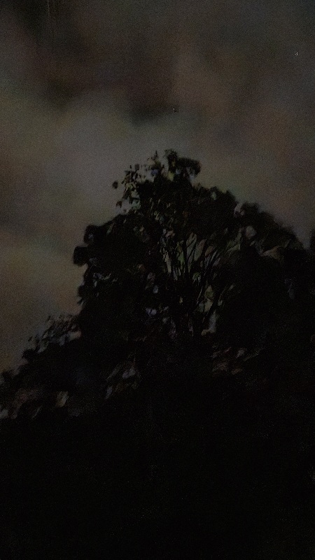 4/10/26 5:30 48F (8.8C) Cloudy. No wind. The moon is hiding. The air is thick with pollen and the smell...