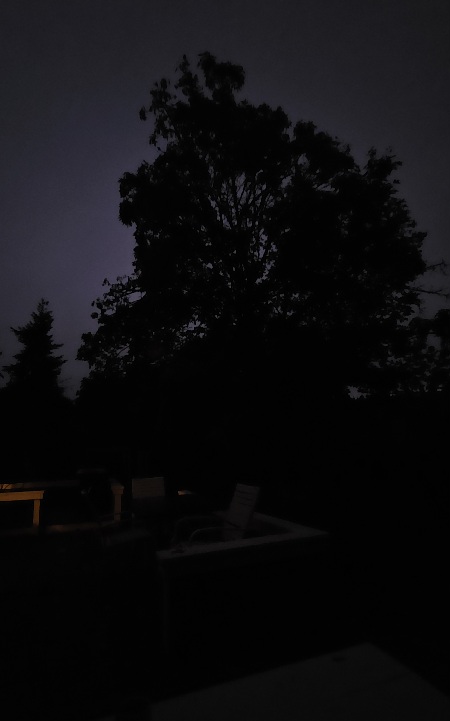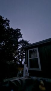 10/21/25 6:45 38F (3.3C) Light breeze, new moon, overcast. Cool, damp and grey.