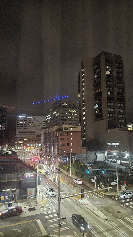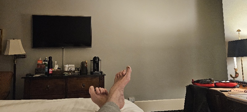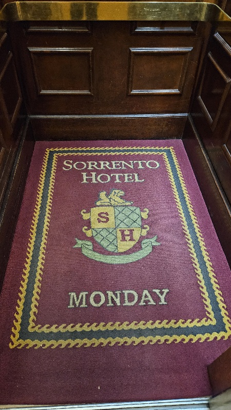 The city glows through a thin fog, the sounds of Monday morning traffic muffled by thick curtains and 115 year old brick walls of the Hotel Sorrento.