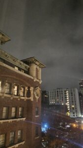 11/9/25 7:00 36F (2.2C) Cool, calm, and clear. The sky is blue, rimmed with pink. The moon, still...