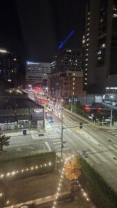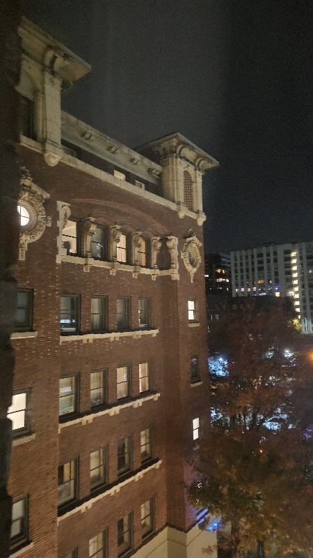 Outside it looks about the same as yesterday: dry, still dark, some traffic and a few people walking. A bicycle went by a block up from Terry Avenue.