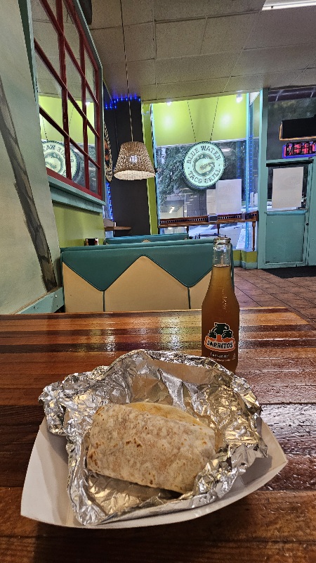 I had to walk for my breakfast. The hotel breakfast was a disappointment and I didn’t find anything tempting across the street, but way down the hill and several blocks north I found a very decent $5 breakfast burrito.