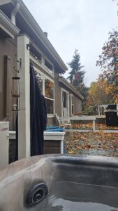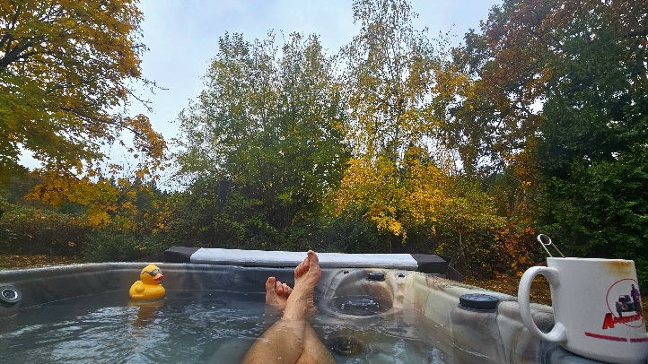 Enjoying a long soak in the hottub this morning  because we bailed on another day camping in the rain and packed it in yesterday.