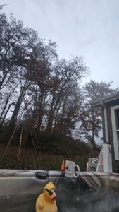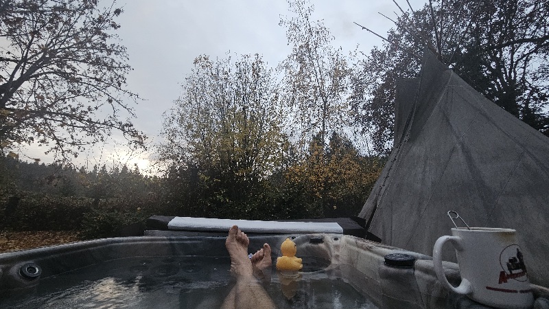 The dog woke me, licking my face at a quarter after six. It was already light by the time I’d made my tea and gone out to the hot tub.