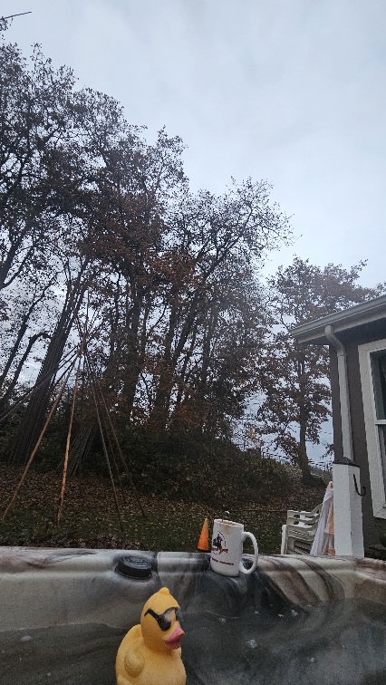 11/14/25 6:30 51F (11C) Cloudy. There is a faint breeze, it is relatively warm, and raining.