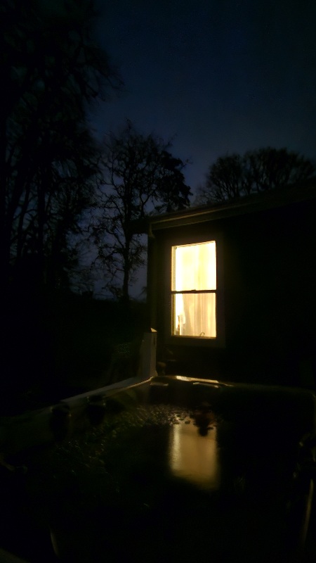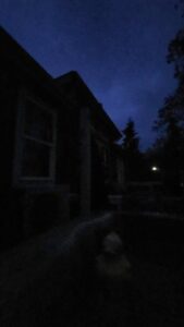 Dark, moonless and cloudy. It was raining lightly but now it has stopped. It is a very quiet morning.