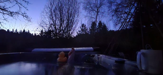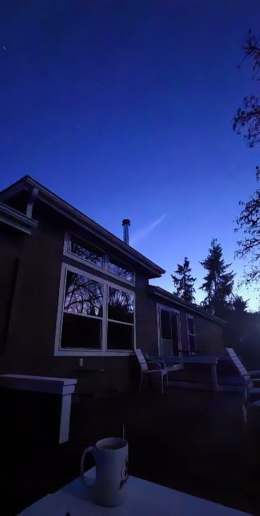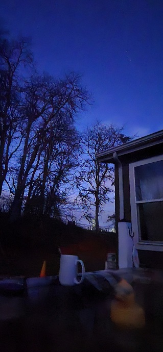 4/10/26 5:30 48F (8.8C) Cloudy. No wind. The moon is hiding. The air is thick with pollen and the smell...