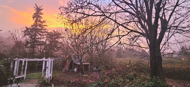 A few squawks and chirps, the dog barking, the rooster’s crow, punctuate an otherwise muted Sunday morning.