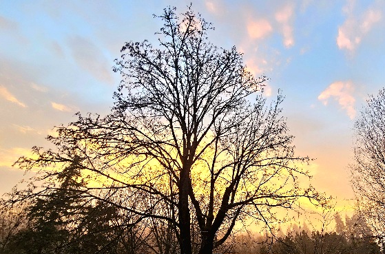 There was a brief flash of brilliant color as the sun was about to crest the ridge, then it darkened, the sky turned gray and the fog closed in around me.