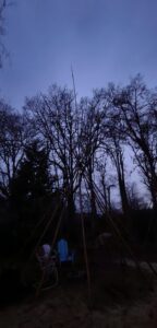 4/10/26 5:30 48F (8.8C) Cloudy. No wind. The moon is hiding. The air is thick with pollen and the smell...