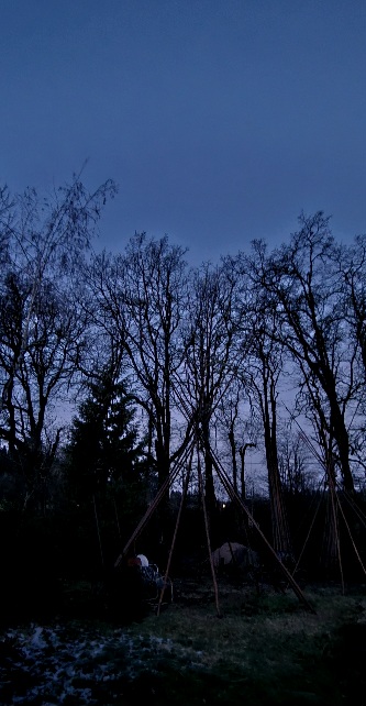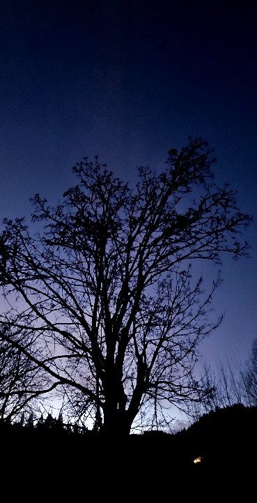 It is cold but the sky is clear, deep blue tinged with violet.