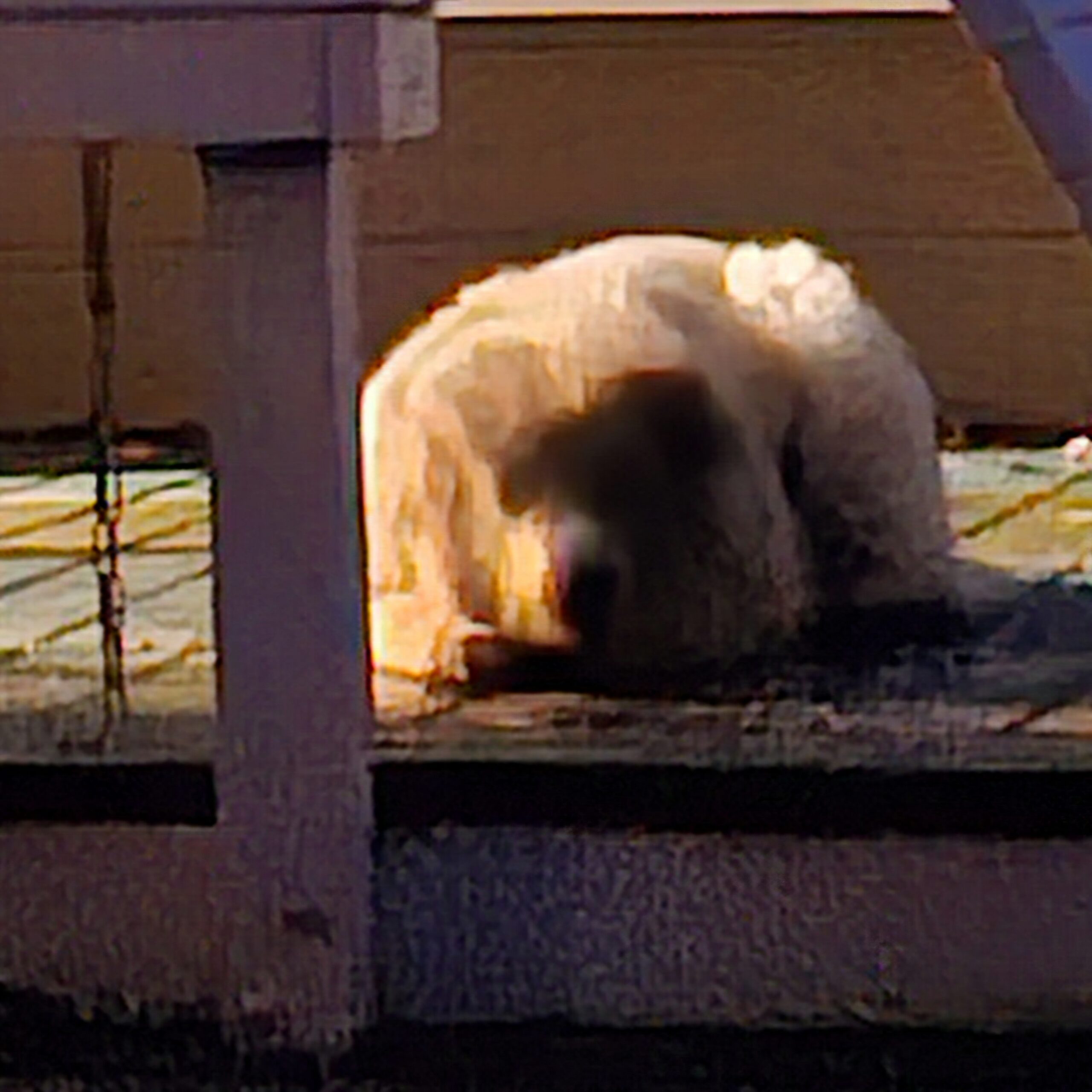 Walter Dawg has toured the perimeter. Finding everything in order, he is resting watchfully on the back porch.