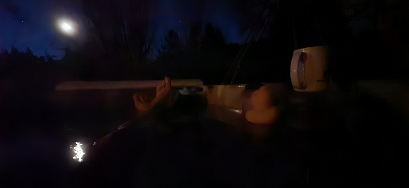 1/13/26 6:30 32F (0.0C) A frosty morning,  filled with stars. The crescent moon is low in the southeast,  just beginning its transit.