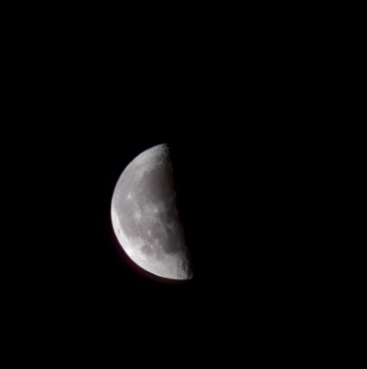 The moon, just past half and waning into the last quarter, is shining brightly down the canyon.