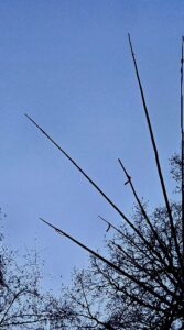 Birds twitter and chirp. A flight of ducks chuckles past.