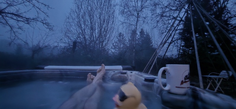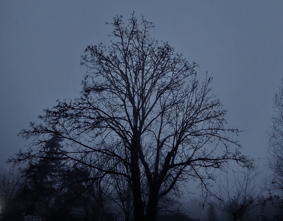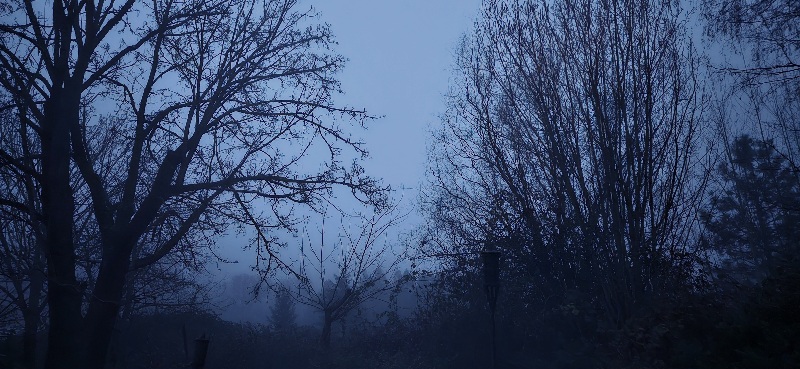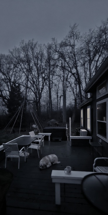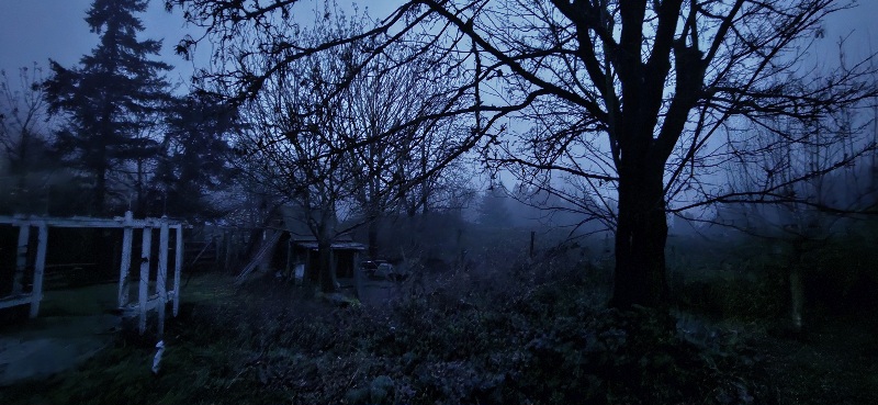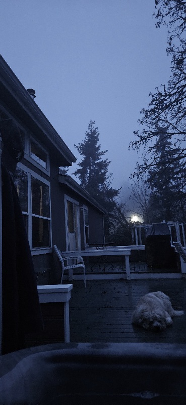 2/8/26 7:45 40F (4.4C) Overcast and wet. No wind. Mist drifts down the ridge through the the dark...