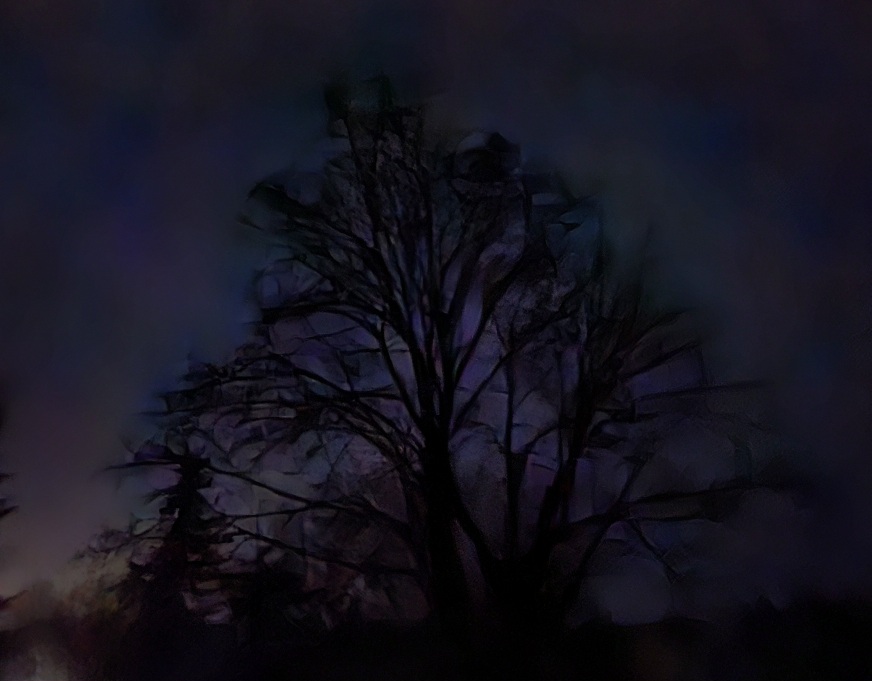 No animals are moving, no birds calling from the dark, but it is not so silent as I had imagined.