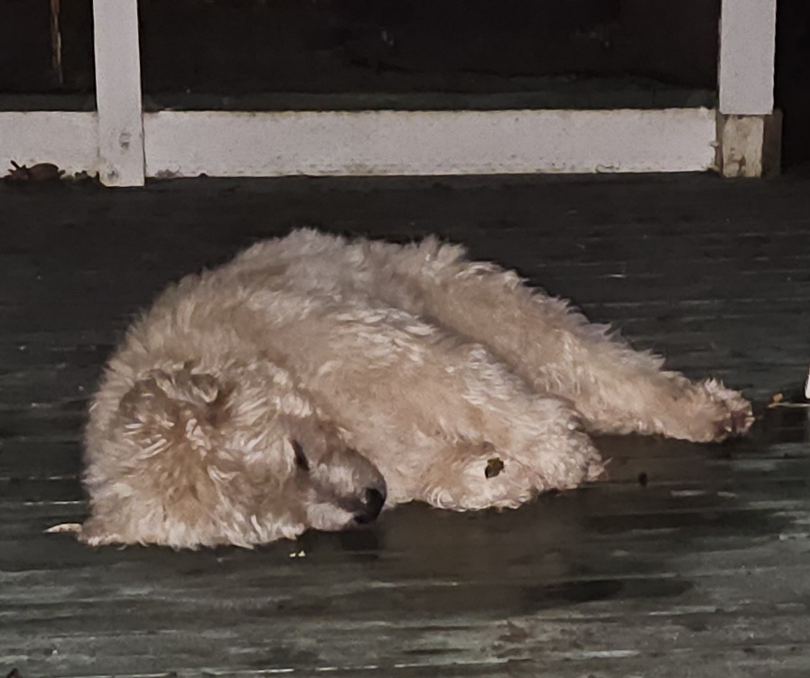 On the back deck Walter naps with one eye open, vigilant even while sleeping.