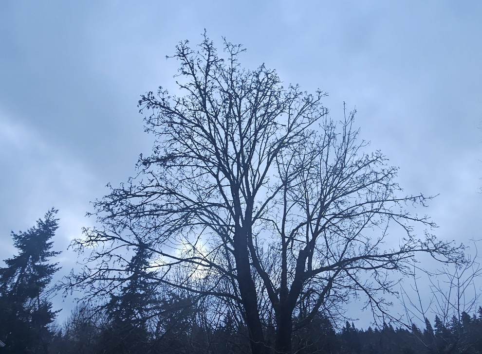 4/12/26 6:00 44F (6.66C) Overcast without a breeze. The moon is waning into its last quarter somewhere...