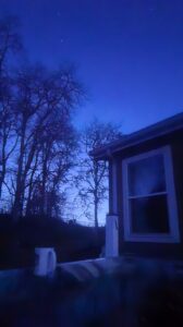 Out my bedroom window I saw a dark indigo sky filled with stars, but by the time I finished with my morning ablutions the predawn glow had chased them away.