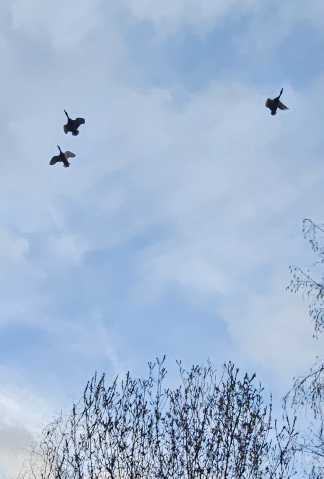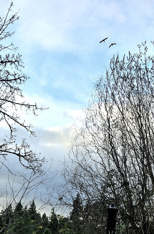 This morning is frantic with birds, all chirping, cooing, tweeting, clucking, cawing, squawking in a loud, simultaneous cacophony.