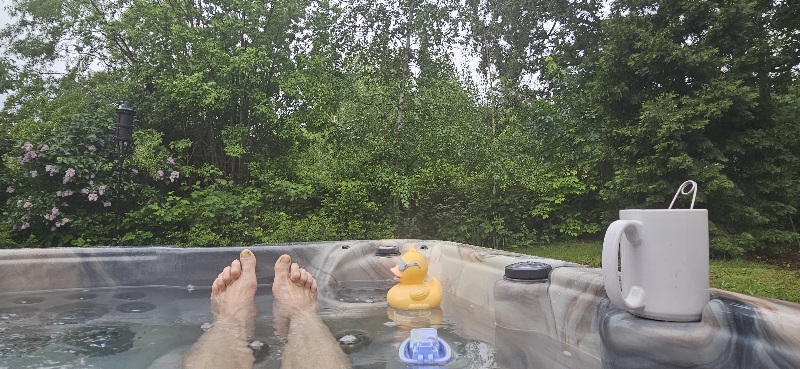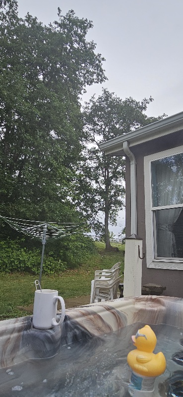 5/22/25 6:00 51f (10.5c) Raining. The drops tapping on the leaves provide percussion for the morning birdsong. It was raining when I went to bed. I do believe it rained all night. Perhaps I can find some mushrooms.