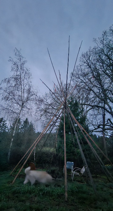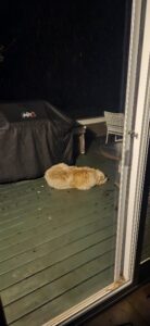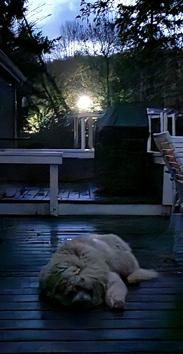 Walter waited patiently for me on the back deck while I dawdled making tea and feeding the cat.