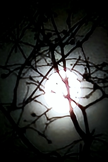 The waning moon still looks full as it slides towards the west ridge.