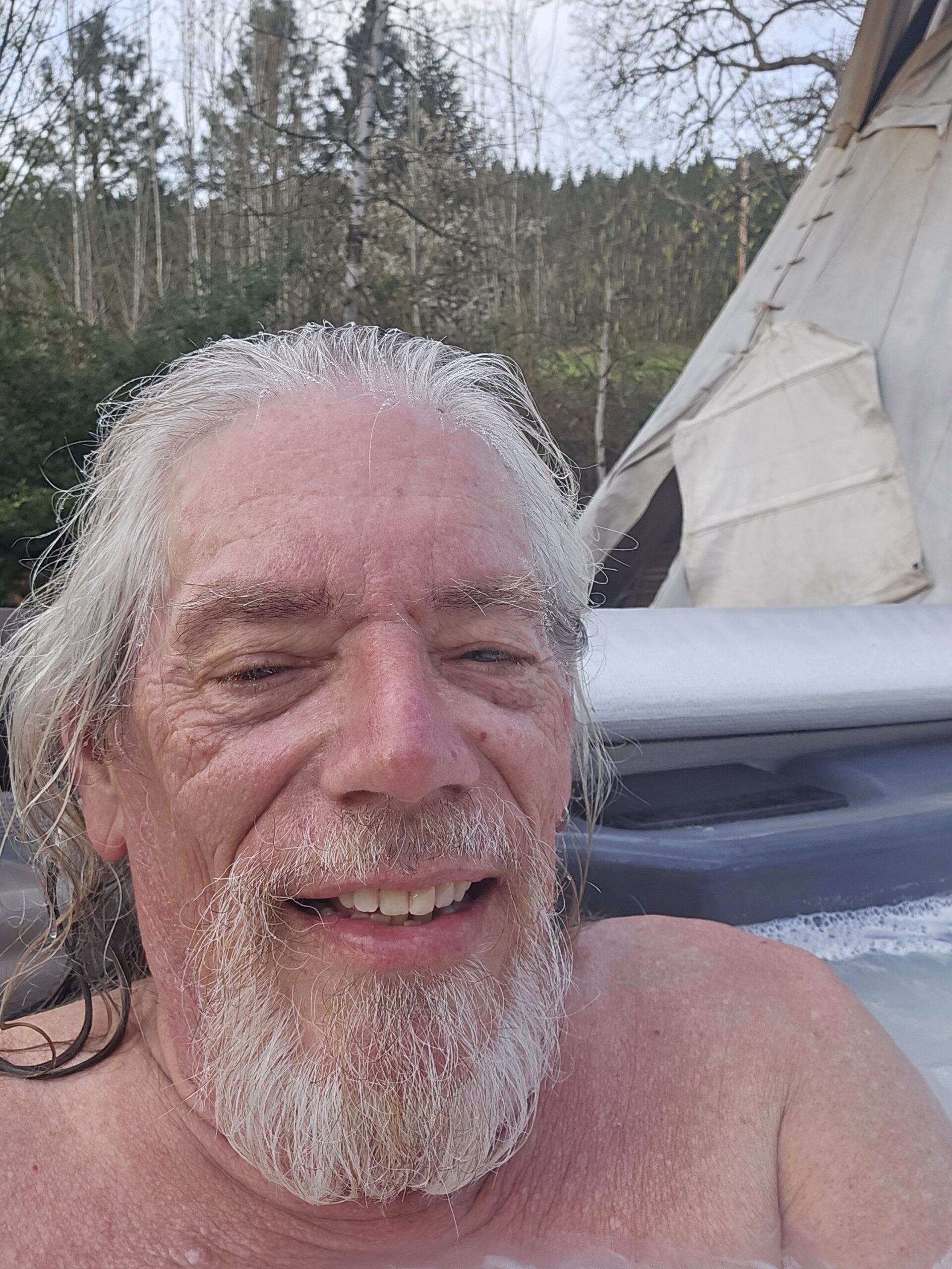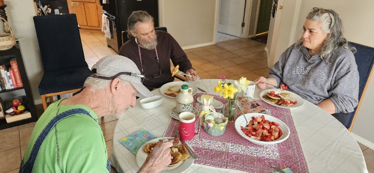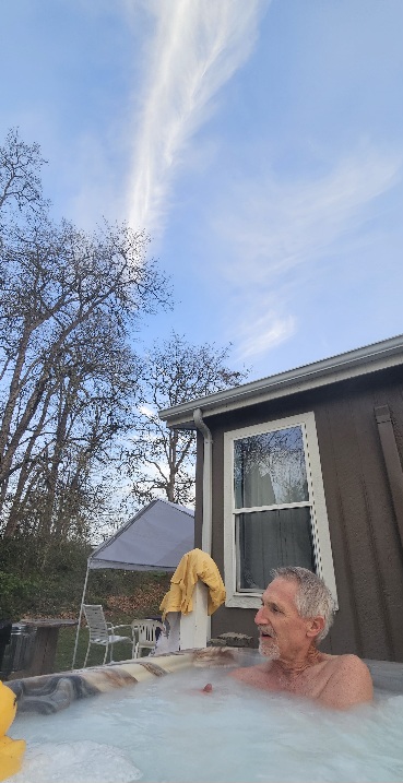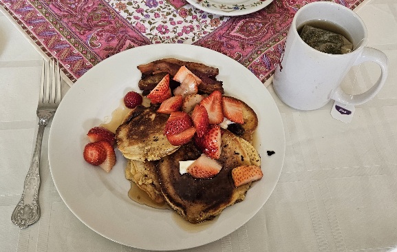After a long soak, Scott and I enjoyed a survivor’s breakfast with Robert and Amy.