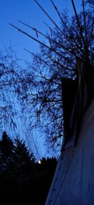 A sapsucker drums on an aluminum ladder, ringing out a rapid tattoo of wishful thinking.