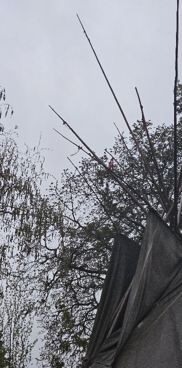 A slight breeze wags the birch catkins and flutters the sodden ribbons at the tips of the lodgepoles.