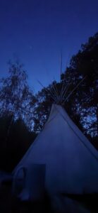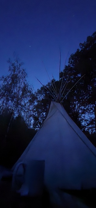 Stars dot the dark blue sky above.