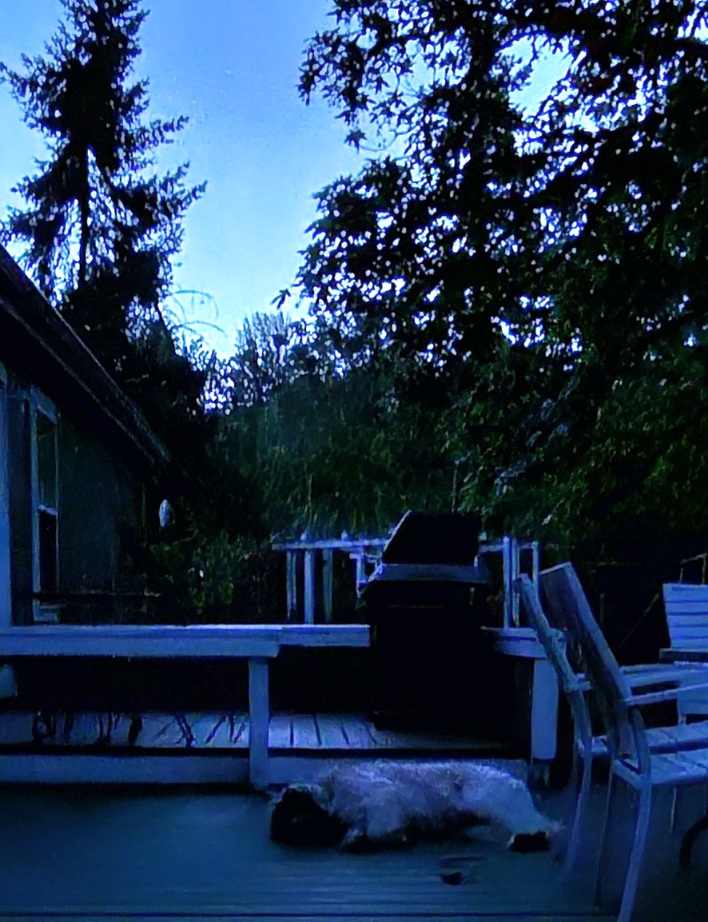 Walter, still exhausted from yesterday’s excursion, sprawls sleeping on the deck.