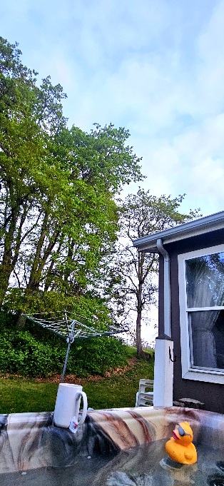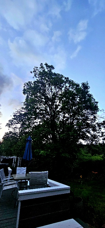 4/28/26 5:45 44F (6.66C) Clear with tattered pink clouds moving across a light blue sky.